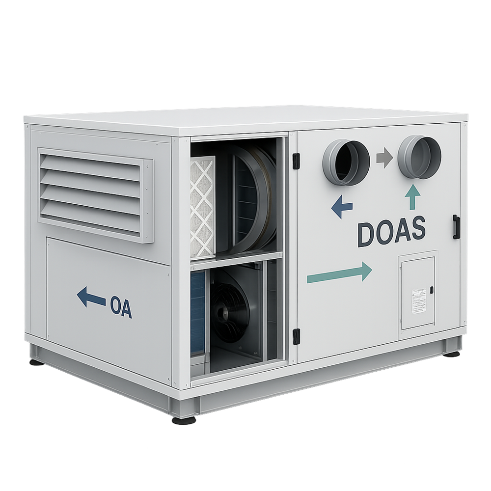 DOAS/MAU(์ธ๊ธฐ ์ ๋ด): ํ๊ธฐยท์ต๋ยท์์ ๋ด๋น(ํ๋ฆฌ+MERV13~14, ์ ์ต/์ฌ์ด)