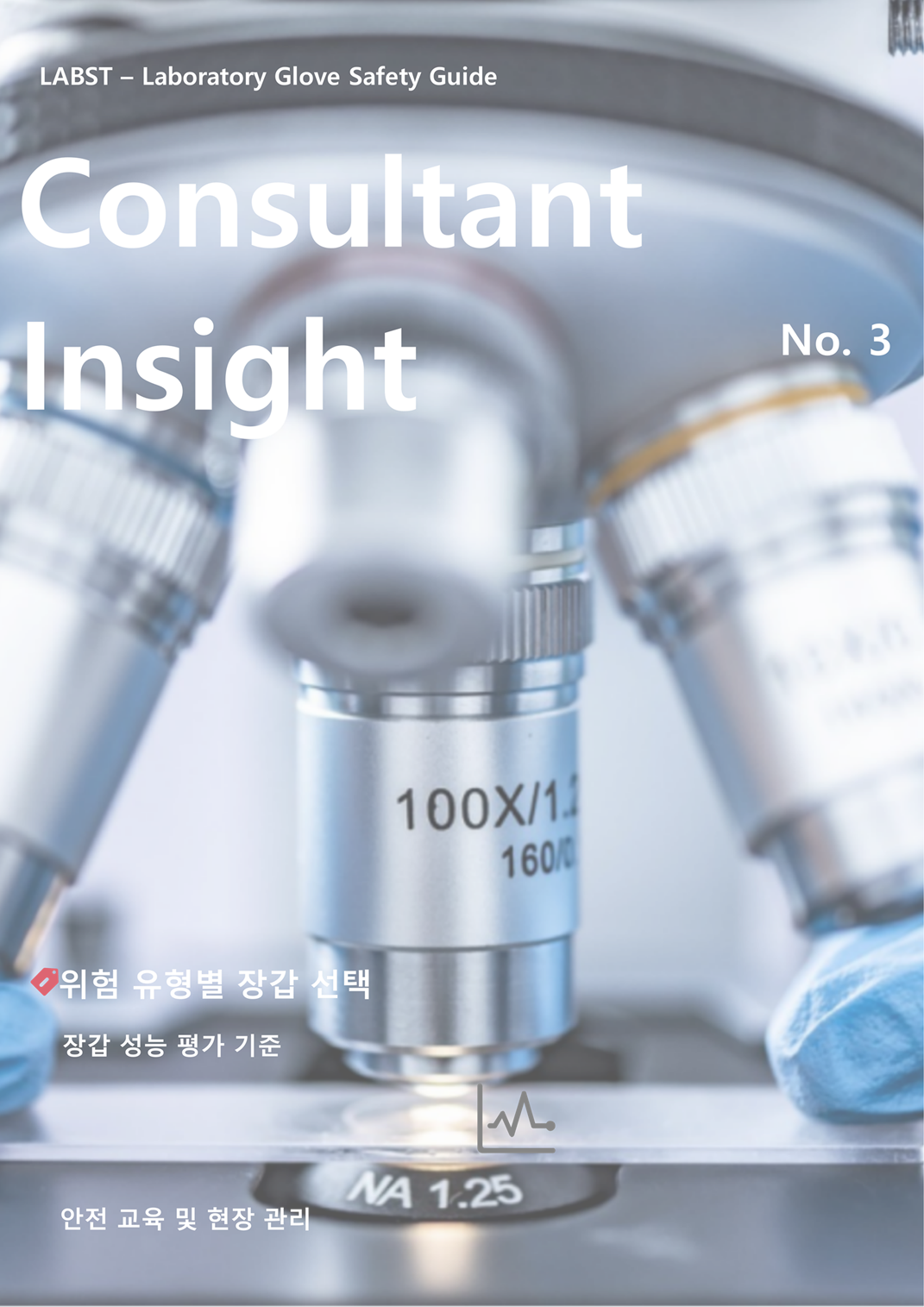 실험실 장갑 안전 가이드Laboratory Glove Safety Guide 실험실 장갑은 위험에 맞추어 선택합니다Gloves Must Match the Risk 모든 실험실 장갑은 동일하지 않습니다.효과적인 보호를 위해 장갑은 반드시 작업 환경의 위험 요소에 적합해야 합니다.Not all laboratory gloves are created equal.For effective protection, gloves must be appropriate for the type of hazard present. 위험 유형별 장갑 선택Selecting Gloves by Hazard Type 화학적 위험 (Chemical Hazards) 니트릴 장갑은 다양한 유기용제에 적합하지만, 강산 및 산화제에는 부틸 또는 네오프렌 장갑이 더 적합할 수 있습니다.선택 전 반드시 화학 호환성 차트를 확인하십시오. Nitrile gloves resist many solvents but may be unsuitable for strong acids or oxidizers. Butyl and neoprene gloves may offer better chemical resistance. Always consult a chemical compatibility chart. 생물학적 위험 (Biological Hazards) 니트릴 및 라텍스 장갑은 우수한 밀착성과 촉각 감도를 제공하며 감염원 차단에 효과적입니다.라텍스 알레르기 여부 확인 필요. Nitrile and latex gloves provide excellent fit and tactile sensitivity, forming a barrier against biological agents. Check for latex allergies among staff. 열 위험 (Thermal Hazards) 극저온 작업에는 극저온 장갑, 고온 작업에는 알루미늄이나 절연 장갑이 필요합니다. Use cryogenic-rated gloves for extreme cold (e.g., liquid nitrogen), and insulated or aluminized gloves for handling hot items. 기계적 위험 (Mechanical Hazards) 절단, 찔림, 반복작업에는 절단저항성 또는 표면 텍스처 장갑이 필요합니다. Use cut-resistant or textured gloves for sharp objects, glassware, or repetitive manual tasks. 장갑 성능 평가 기준Glove Material and Performance Considerations 장갑 두께 (Thickness)두꺼울수록 보호성 우수하나, 민첩성 감소Thicker gloves offer better barrier protection but reduce dexterity 핏과 착용감 (Fit and Dexterity)손에 꼭 맞고 움직임에 방해되지 않아야 함Gloves should fit well without restricting movement 파과 시간 (Breakthrough Time)화학 물질이 침투하는 데 걸리는 시간Choose gloves with breakthrough times exceeding exposure duration 열화 및 투과 (Degradation & Permeation)장시간 노출 시 재질의 변화 여부 확인Assess if glove material weakens, swells, or degrades with exposure 안전 교육 및 현장 관리Training and Workplace Implementation 교육 강화실험별 적합 장갑 선택 기준을 명시하고 부적절 사용의 위험을 교육Safety training must emphasize matching gloves to specific tasks and highlight risks of misuse 표지 및 자료 제공장갑 보관 위치에 화학 호환성 차트 및 안내 표지 부착Post compatibility charts and signage near glove storage areas 접근성 강화각 작업 공간에 적절한 장갑을 쉽게 접근 가능하게 배치Make appropriate gloves easily accessible at point of use 정기적 점검장갑 사용 실태를 주기적으로 감사하여 개선 포인트 식별Conduct periodic glove audits to verify proper use and identify improvements 실험실 장갑은 만능이 아닙니다Conclusion: Lab Gloves Are Not One-Size-Fits-All 장갑 선택은 단순한 습관이나 편의가 아닌, 위험, 용도, 착용자의 적합성을 기준으로 전략적으로 접근해야 합니다.Gloves should not be chosen out of habit or convenience, but based on risk, task, and fit. 관리자는 장갑을 단순히 제공하는 것을 넘어, 적절한 사용법에 대해 교육하고 실천하도록 독려해야 합니다.Lab managers must go beyond supplying gloves—they must educate and empower staff to select and use gloves correctly.