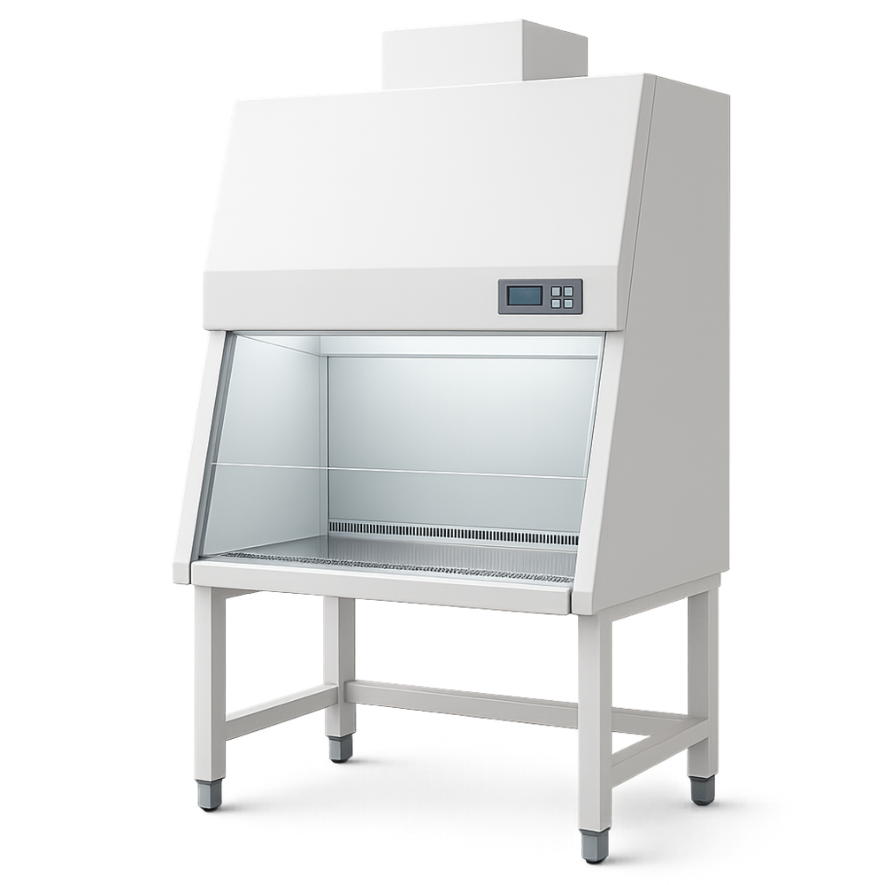 간단한 생물 안전 캐비닛(BSC)입니다. (멸균되지 않은 실내 공기가 작업 표면 위로 유입됨)