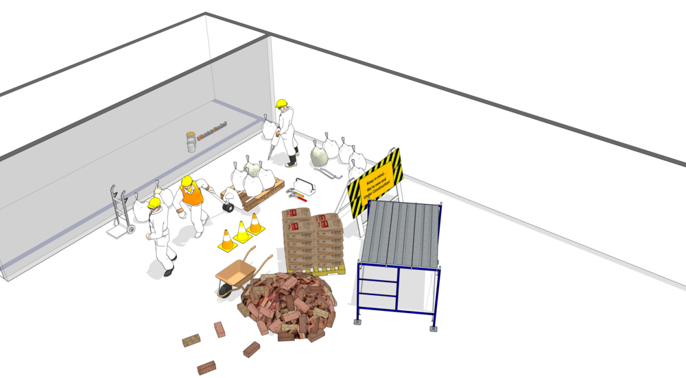 ์ฒ ๊ฑฐ ๋์: ์ฌ๋ฌด์ค ๊ฐ๊ตฌ(์ฑ ์, ์์, ์๋ฅ ๋ณด๊ดํจ ๋ฑ), ์นธ๋ง์ด, ๋ฒฝ์ฒด, ์ฒ์ฅ ๋ง๊ฐ์ฌ, ๋ฐ๋ฅ์ฌ, ์ ๊ธฐ ๋ฐฐ์ , ๋ฐฐ๊ด ๋ฑ.