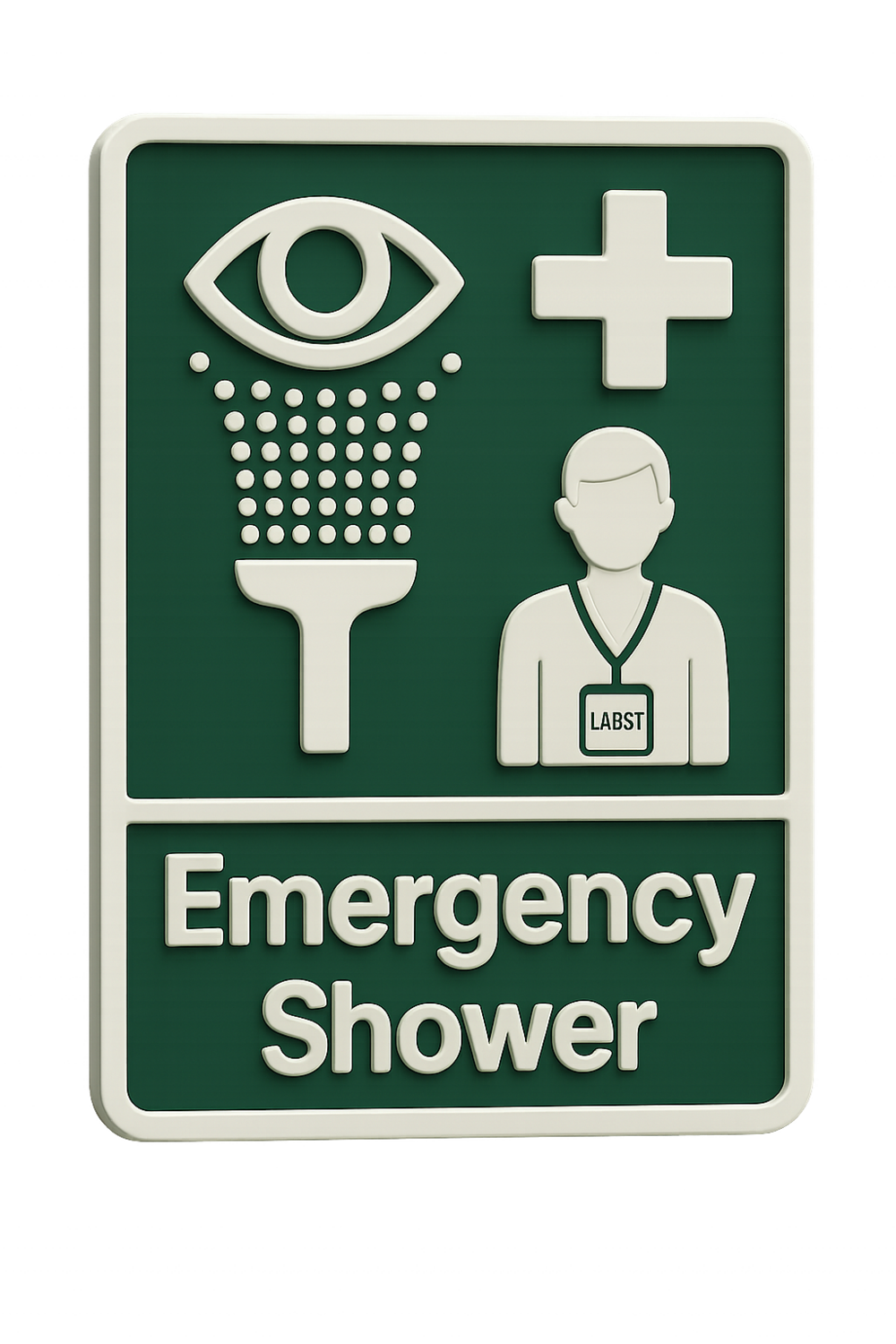 비상 샤워기와 아이샤워는 실험실에서 실무자들의 위험성 오염을 제거 함.