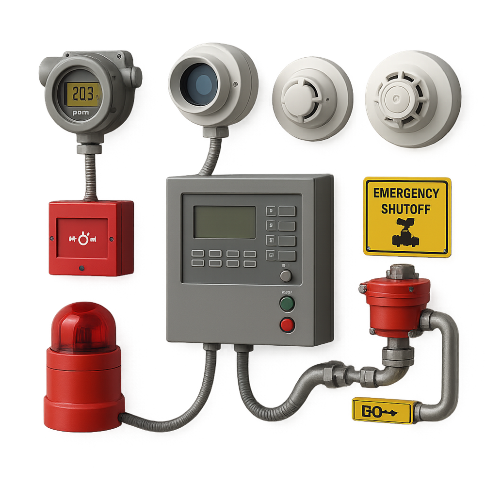 ๊ธฐ๋ฅ: ๊ฐ์ค ๋์ถ์ ์ค์๊ฐ์ผ๋ก ๊ฐ์งํ๊ณ , ์ํ ์์ค์ ๋๋ฌํ๋ฉด ์๋์ผ๋ก ๊ฐ์ค ๊ณต๊ธ์ ์ฐจ๋จํ๋ ์์คํ