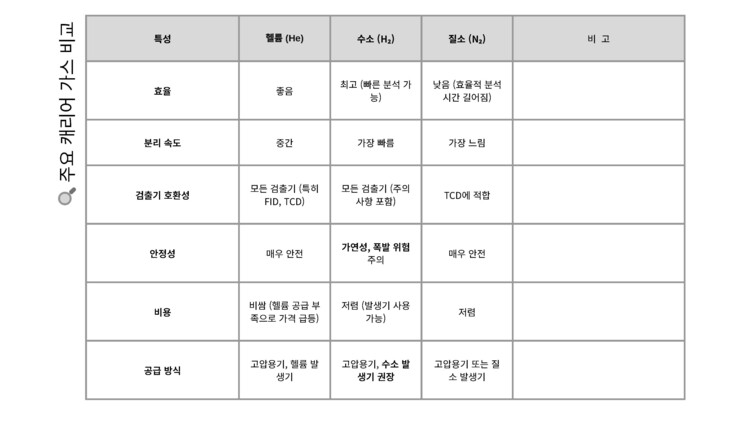 역할: 시료를 컬럼을 통해 이동시키는 주요 가스