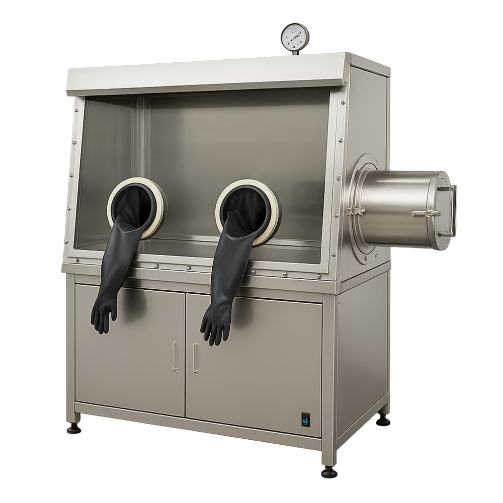상자의 측면에 부착된 장갑을 사용하여 내부 물질을 안전하게 조작할 수 있으며, 주로 민감한 물질을 다루거나 유해한 물질로부터 작업자를 보호하는 데 사용.