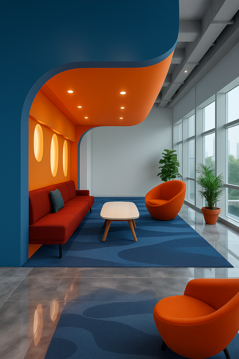 Natural light: Natural light entering through windows or glass walls makes a space bright and lively.