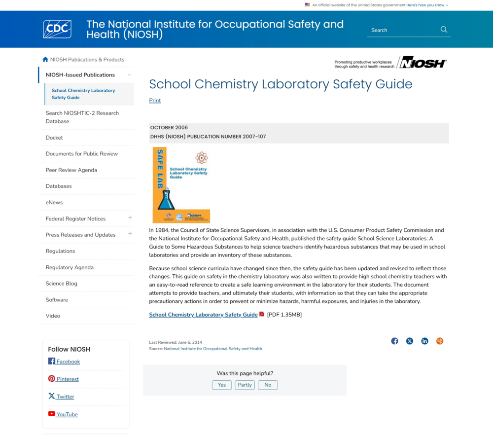 NIOSH Laboratory Safety Guidance (๋ฏธ๊ตญ)