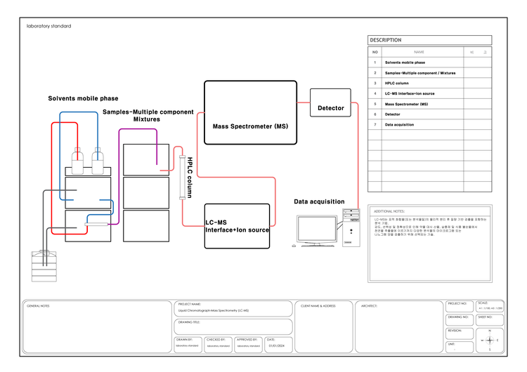 LC-MS는 액체 크로마토그래피(Liquid Chromatography, LC)와 질량 분석기(Mass Spectrometry, MS)를 결합한 분석 장비로, 복합적인 화합물의 분리, 식별 및 정량 분석에 사용.