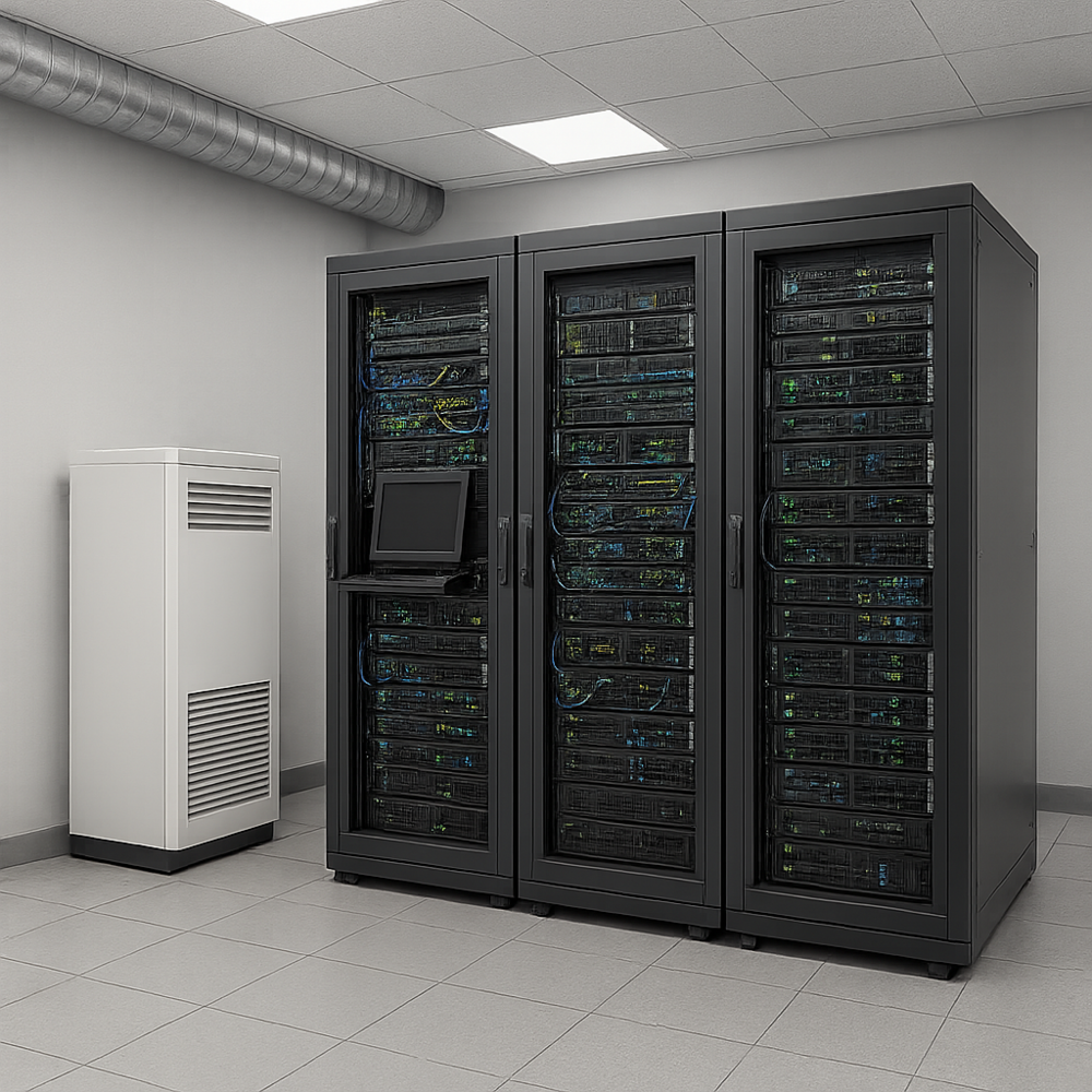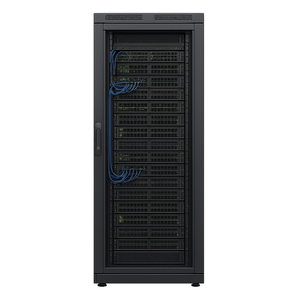 Cat6/Cat6a ์ผ์ด๋ธ ๋๋ ๊ด์ฌ์ ์ผ์ด๋ธ์ด ๋คํธ์ํฌ ์ฅ์น์ ์คํ ์ฅ๋น ์ฌ์ด์ ์ค์น๋์ด ๊ณ ์ ๋ฐ์ดํฐ ์ ์ก์ ์ง์ ํจ.