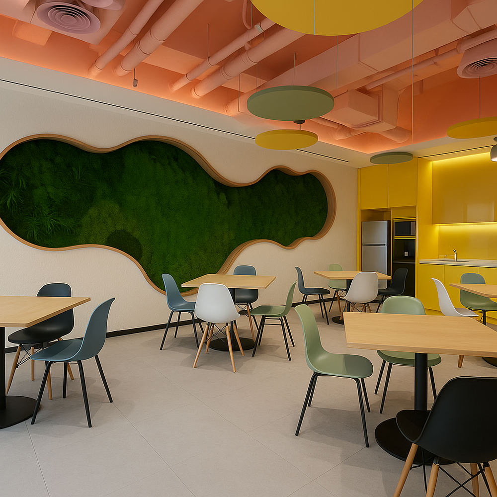 The colors used in office spaces have a significant impact on employees' moods and productivity.