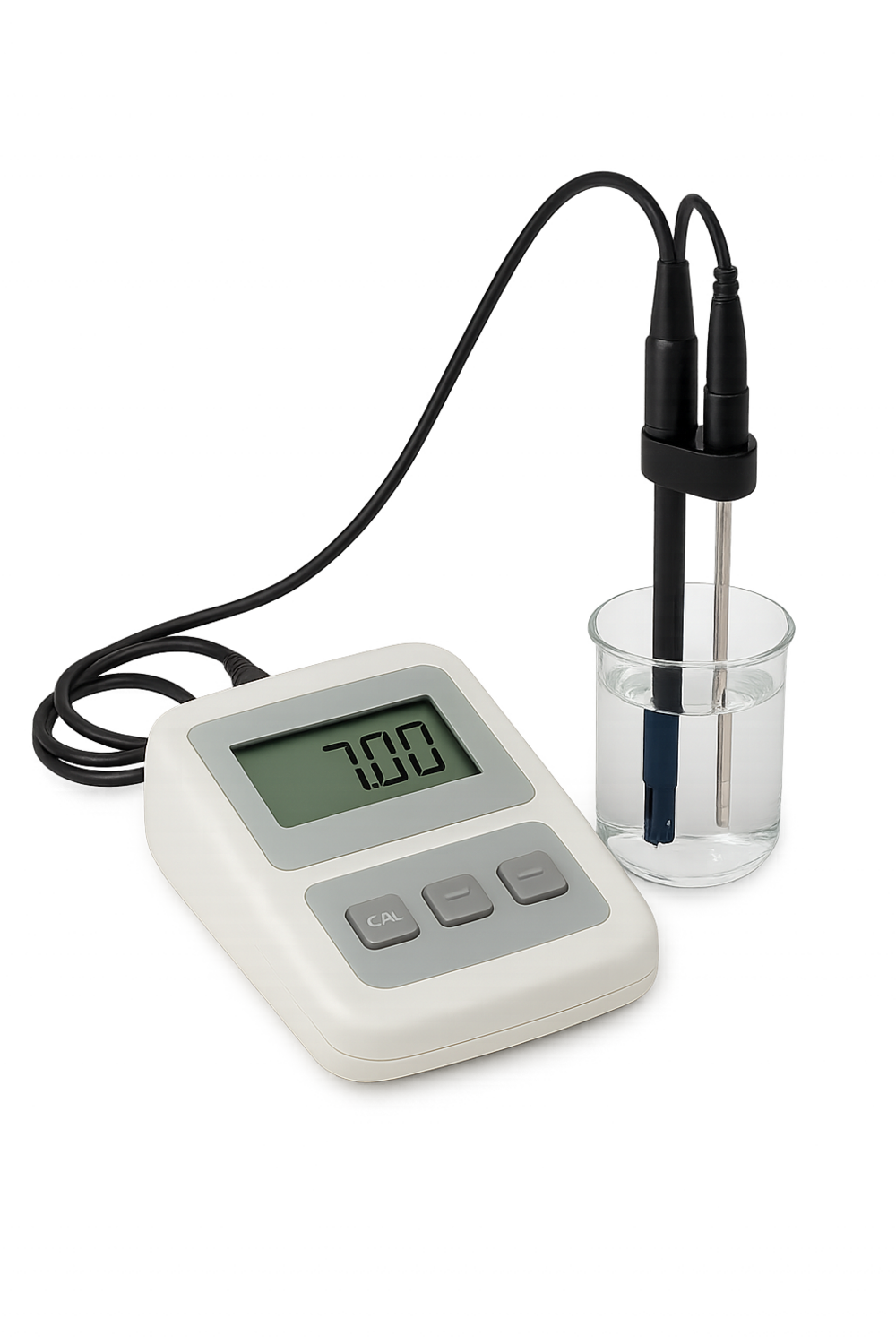 pH 측정기는 용액 내 수소 이온 농도(H⁺)를 측정하여 그 농도를 pH 값으로 변환해 표시하는 장비.