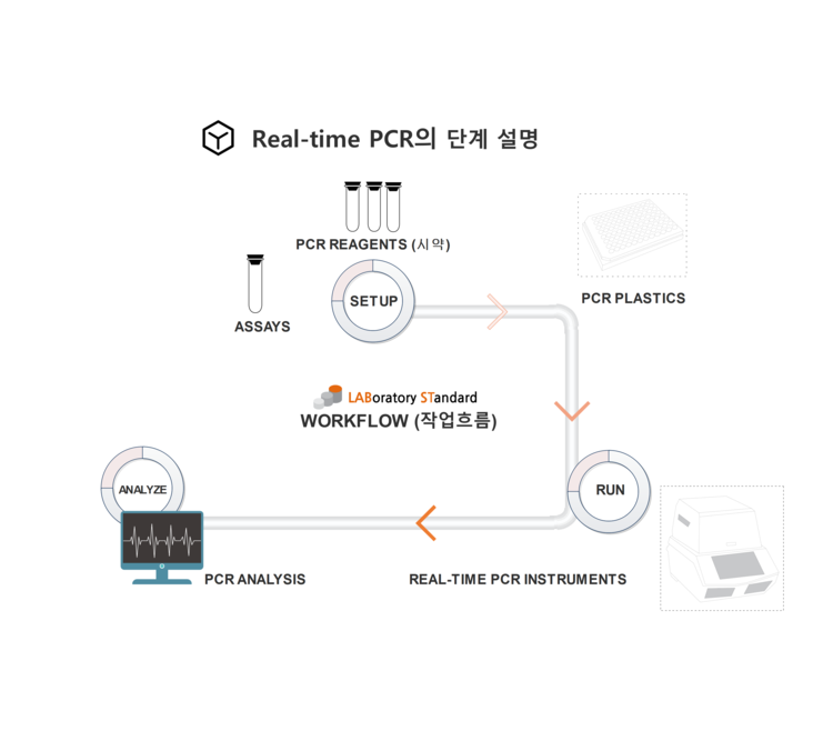 Real-time PCR 또는 qPCR (quantitative PCR)은 DNA 증폭 반응이 진행되는 동안 형광 신호를 이용해 실시간으로 반응을 감지하여 정량적인 유전자 분석을 수행하는 기술.