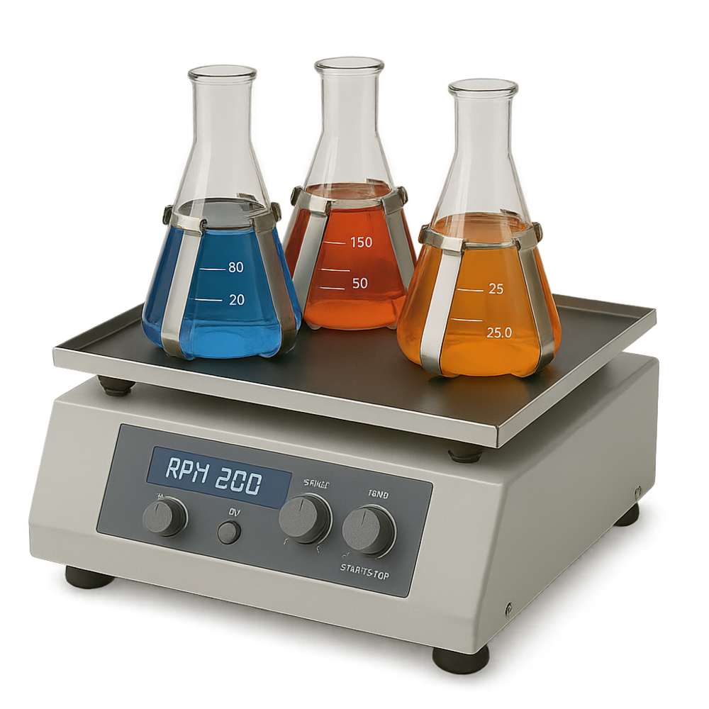 진탕기는 실험실에서 시료를 혼합하거나 용해시키는 데 사용하는 장비로, 다양한 용기(플라스크, 비커, 시험관 등)를 흔들어 일정하게 혼합하거나 반응을 촉진 함.