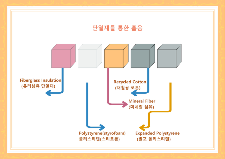 ํก์์ฌ ์ฝ์ : ๋ฒฝ์ฒด ์ฌ์ด์ ์ ๋ฆฌ ์ฌ์ , ๋ฏธ๋ค๋ ์ธ(mineral wool)๊ณผ ๊ฐ์ ํก์์ฌ๋ฅผ ์ฝ์ ํ๋ฉด ์์ ์ฐจ๋จ ํจ๊ณผ๋ฅผ ๋์ฑ ๋์ผ ์ ์์.