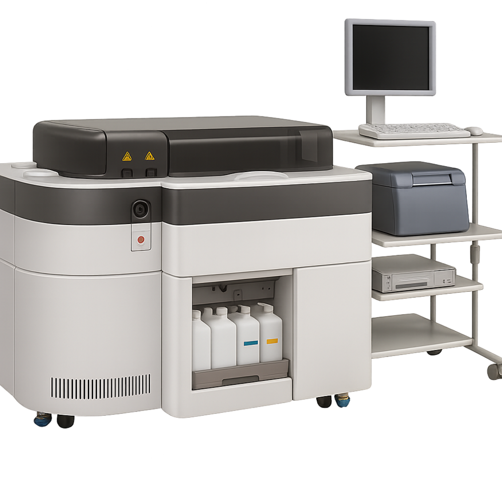 Blood analyzers, automated chemistry analyzers, PCR devices, ELISA instruments, microbial incubators.
