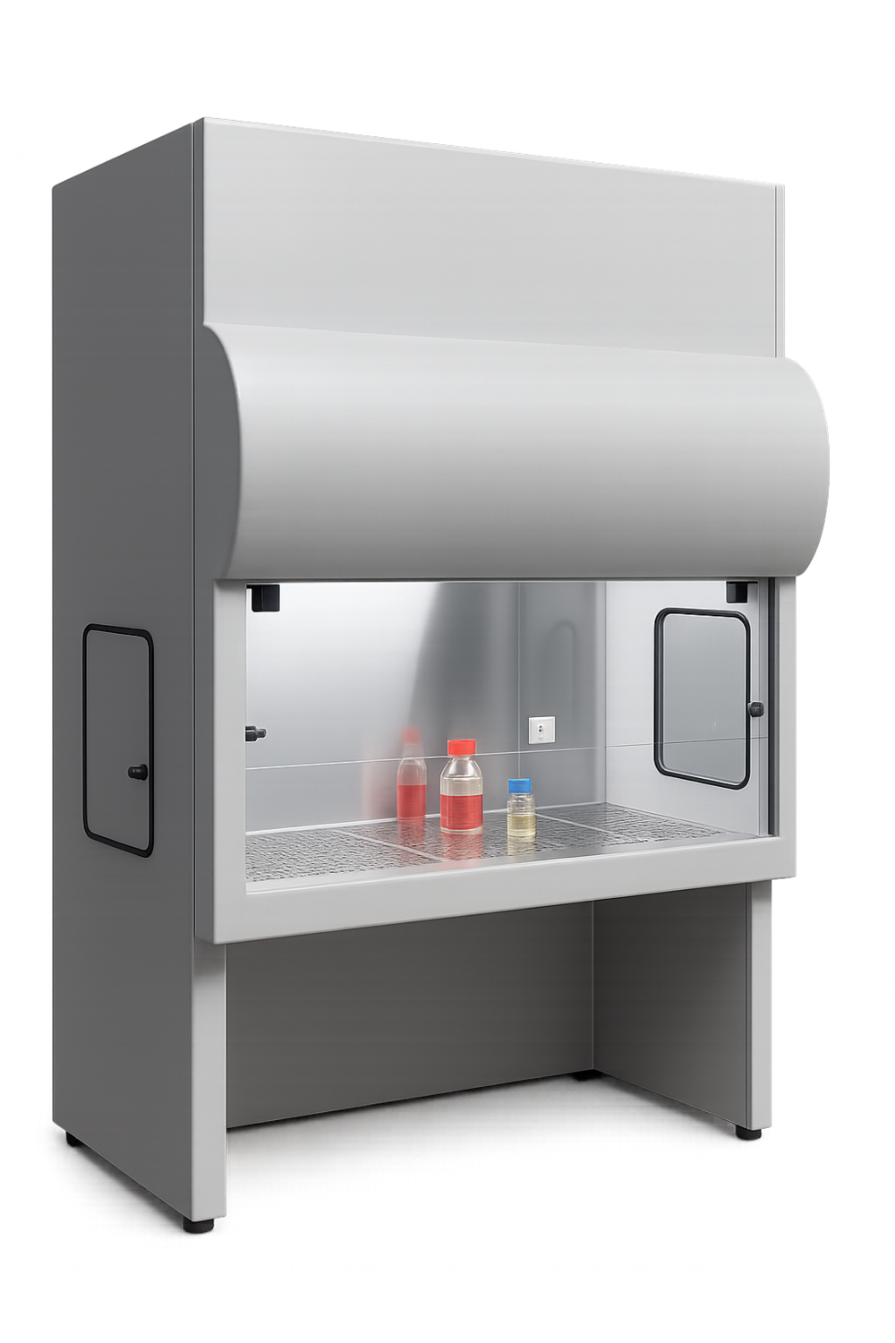 Due to the handling of chemical and toxic substances, a robust ventilation system is crucial. The laboratory also requires safety equipment such as chemical storage cabinets for reagents and materials.
