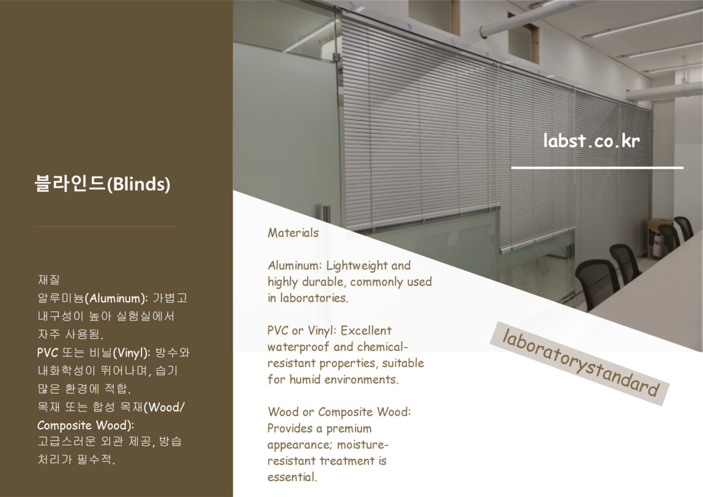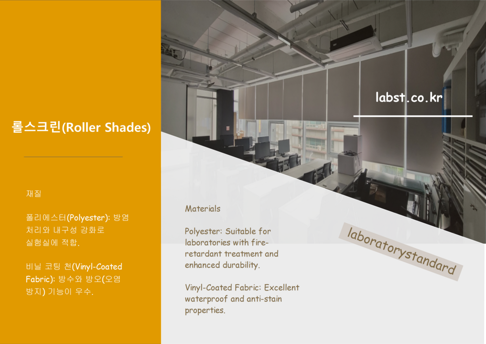 Laboratory window coverings include a variety of options such as blinds, roller shades, blackout curtains, shutters, and motorized systems. The choice of materials and colors depends on the laboratory's purpose and environment. Key requirements such as fire resistance, waterproofing, light blocking, and energy efficiency must be met.